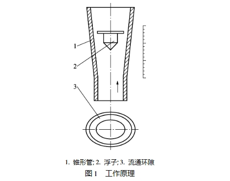 浮子流量计的结构和工作原理如图1所示,由.其工作原理可以得出流量基本方程式为: