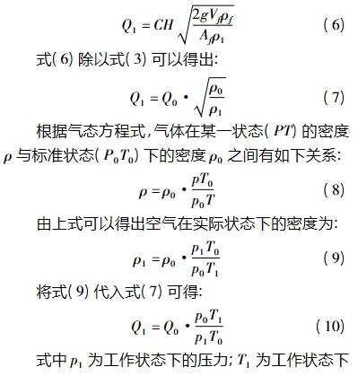 式中:Q0为标准状态下空气的体积流量,即刻度示值;ρ0为标准状态下空气的密度。