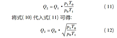 式中:Q2为在操作状态下空气的体积流量换算为标准状态下的体积流量。
